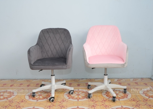 Ghế chân xoay bọc nhung PA079 thiết kế thanh lịch, hiện đại với phần thân ghế được bọc vải nhung cao cấp tạo sự êm ái, thoải mái cho người ngồi cùng phần chân xoay linh hoạt, thuận tiện và an toàn. PA079 có thể làm ghế nhân viên văn phòng, cửa hàng hay ghế thẩm mỹ viện, tiệm nail,…hoặc có thể làm ghế học tập, làm việc tại nhà.